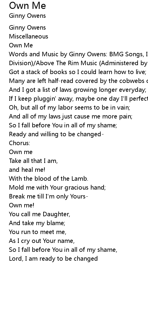 Words and Music by Ginny Owens: BMG Songs, Inc. (Gospel |
