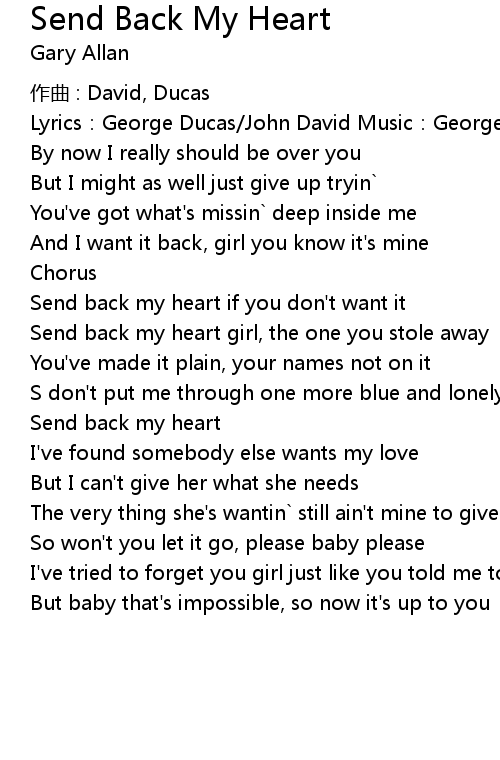 | Send back my heart girl, the one you stole away | |