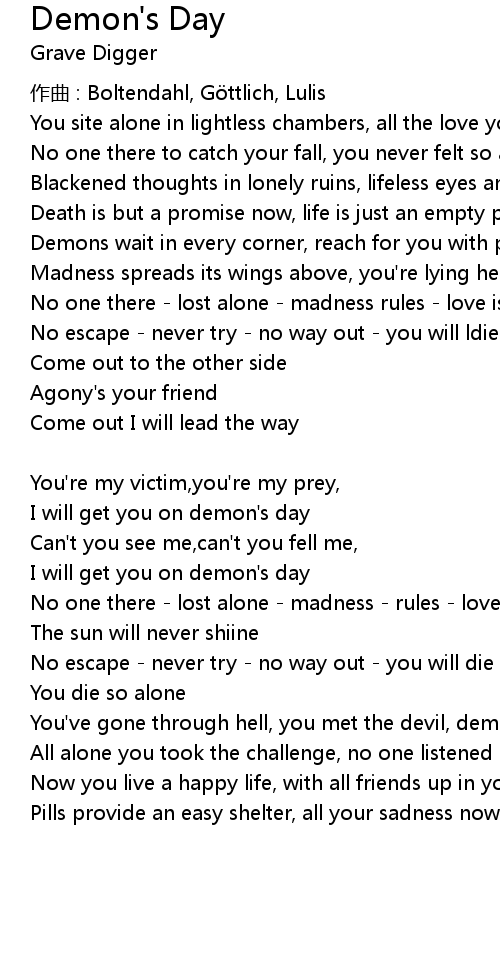 | I will get you on demon' s day | |