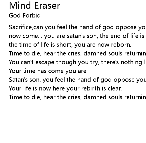 Sacrifice,can you feel the hand of god oppose your will to die... your time has now come... you are satan's son, the end of life is near, your death is clear the time of life is short, you are now reborn. |