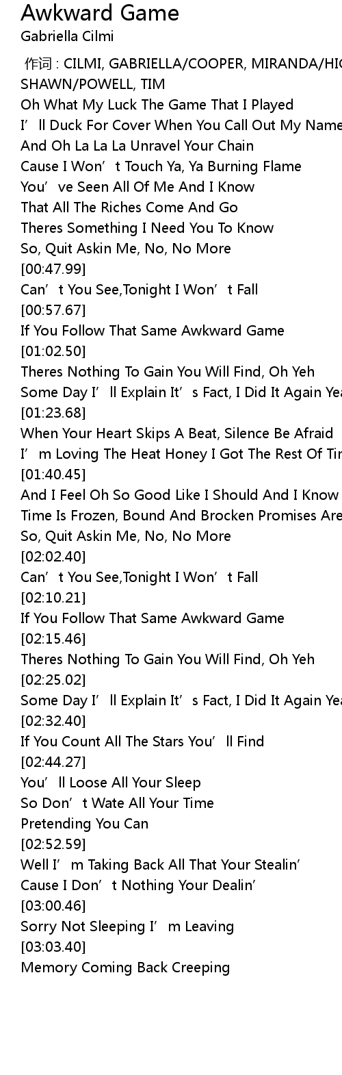 | [00:59.64] | If You Follow That Same Awkward Game |