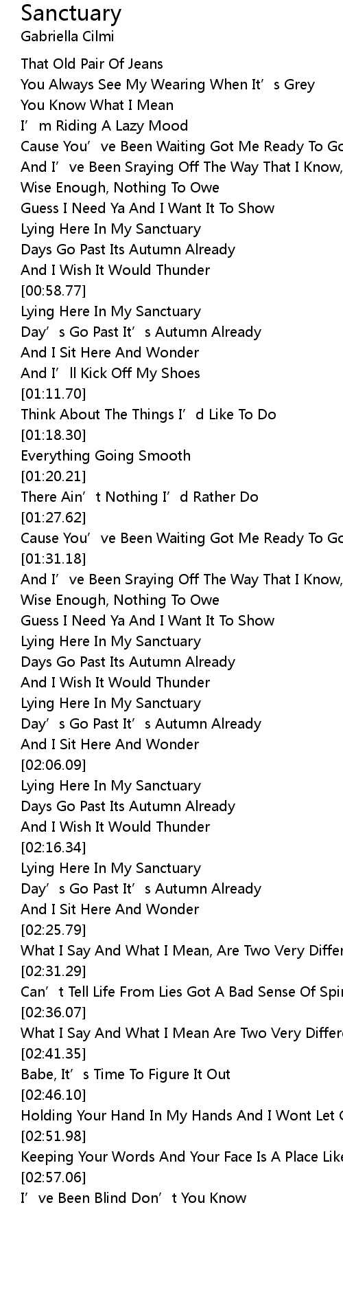| [01:59.15] | Lying Here In My Sanctuary |