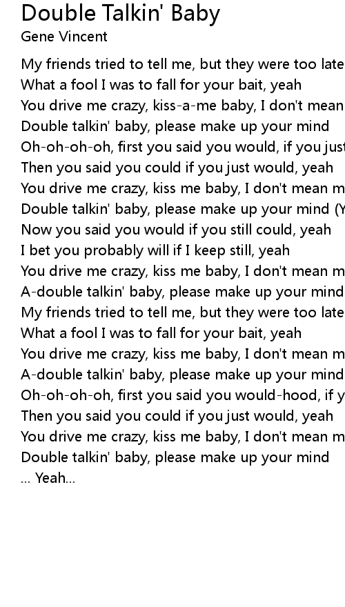 A-double talkin' baby, please make up your mind (Yeah, git-it, go, rock) |