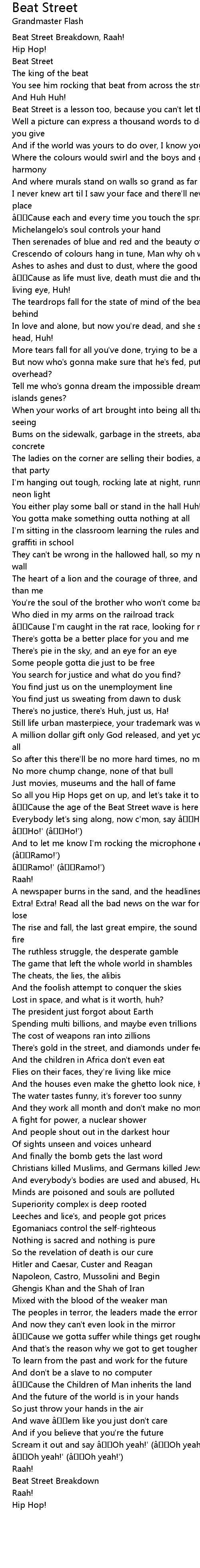 | âCause the age of the Beat Street wave is here | |