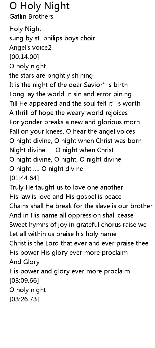 | [00:23.44] | It is the night of the dear Savior' s birth |