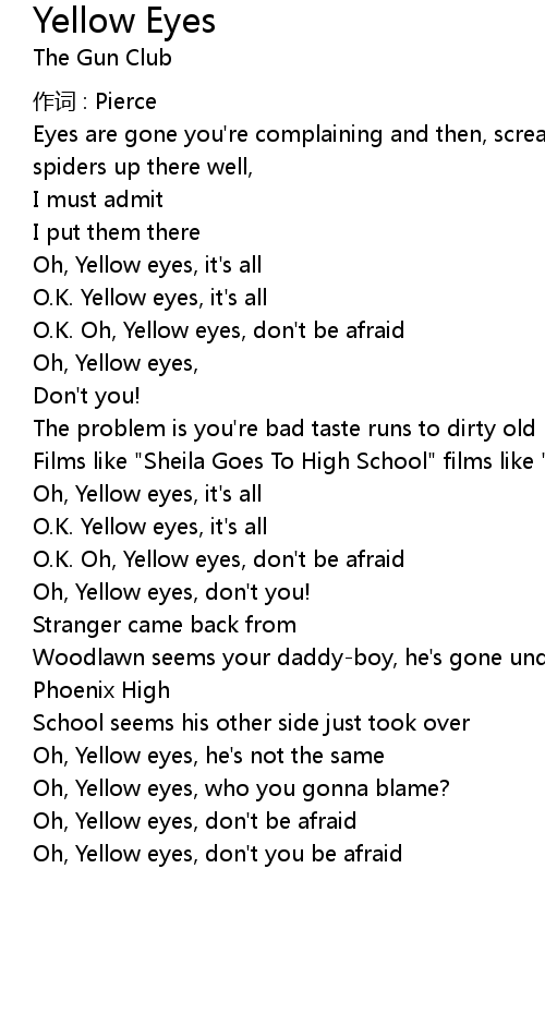 | Oh, Yellow eyes, don' t you be afraid |