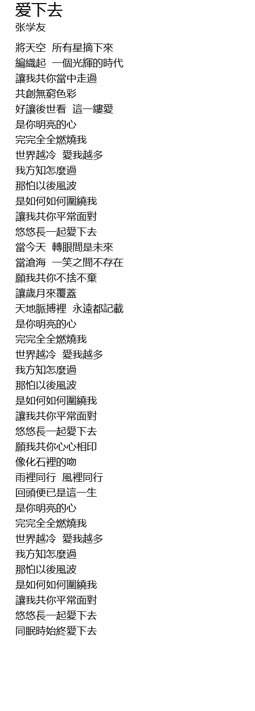 | [03:33.900] | yōu yōu zhǎng yì qǐ ài xià qù |