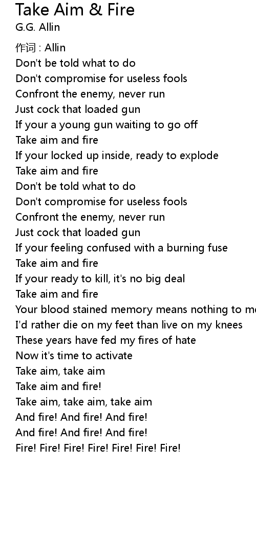 | Take aim, take aim, take aim | |
