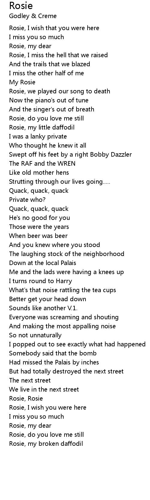 Rosie, do you love me still |