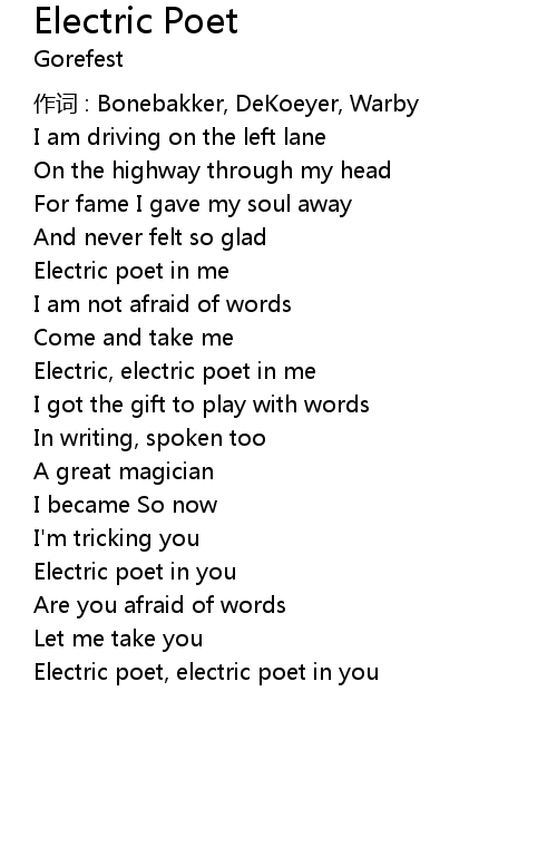 | Electric, electric poet in me | |