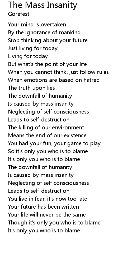 | Is caused by mass insanity | |