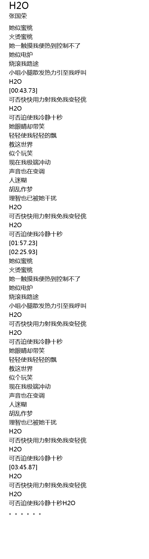 | [03:57.13] | ke fou po shi wo leng jing shi miao H2O |