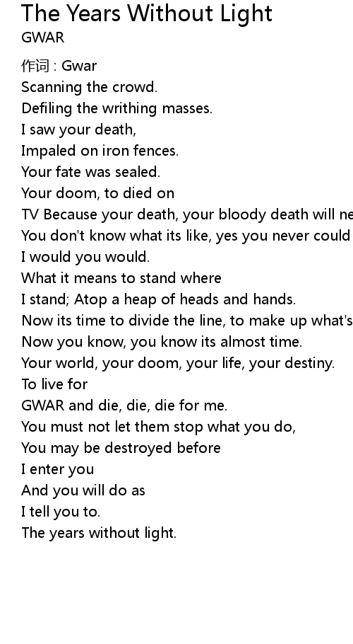 | 作词 : Gwar | |