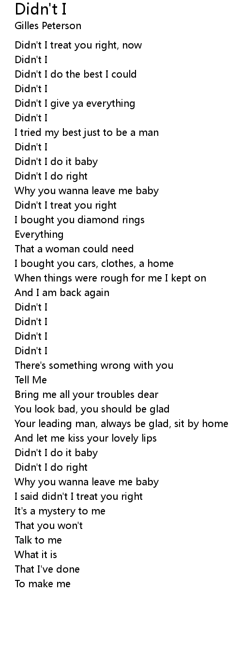 Didn't I treat you right |