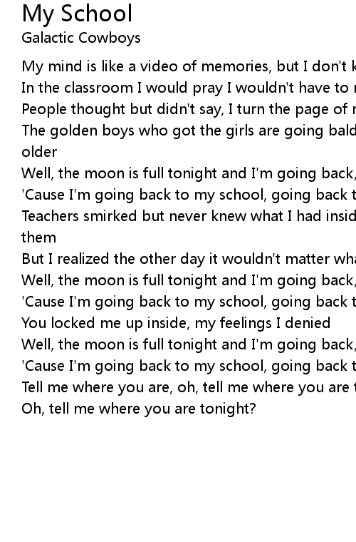 'Cause I'm going back to my school, going back to my school |