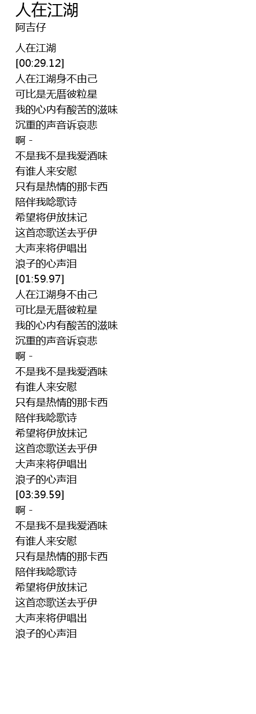 | [00:05.08] | 人在江湖 |