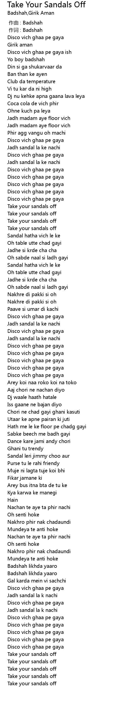 | [00:01.000] | 作词 : Badshah |