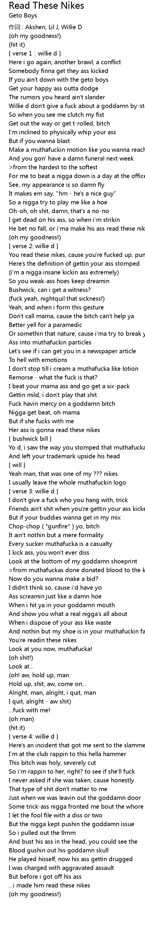 | You read these nikes, cause you' re fucked up, punk | |