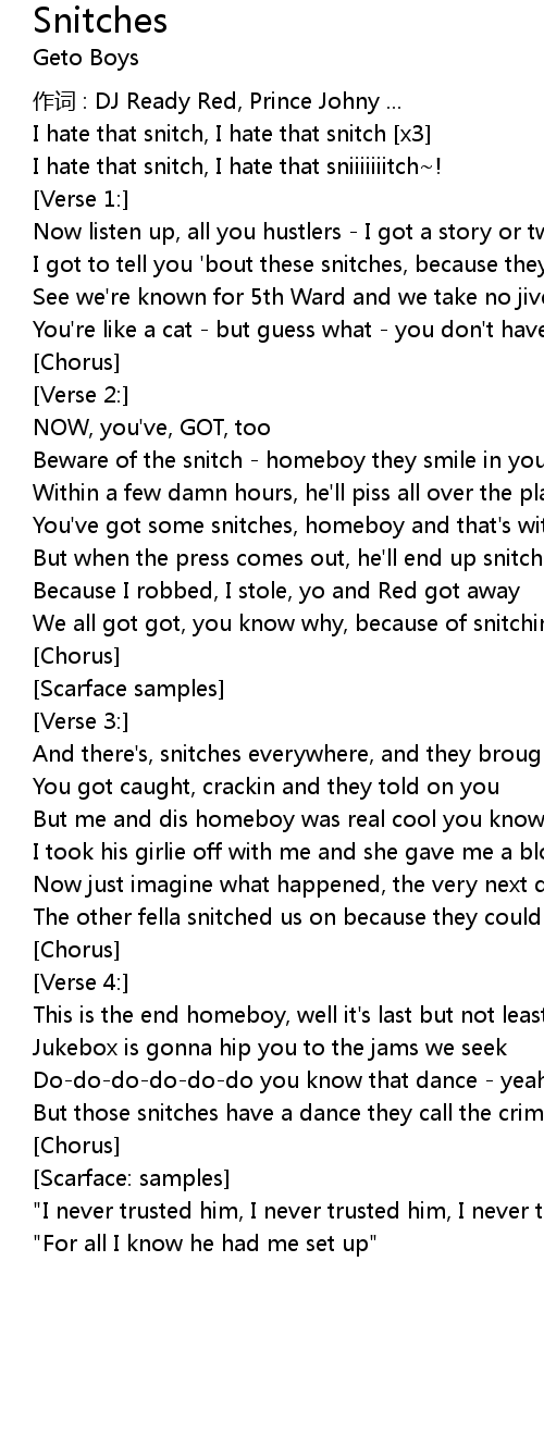 | I hate that snitch, I hate that sniiiiiiitch! | |
