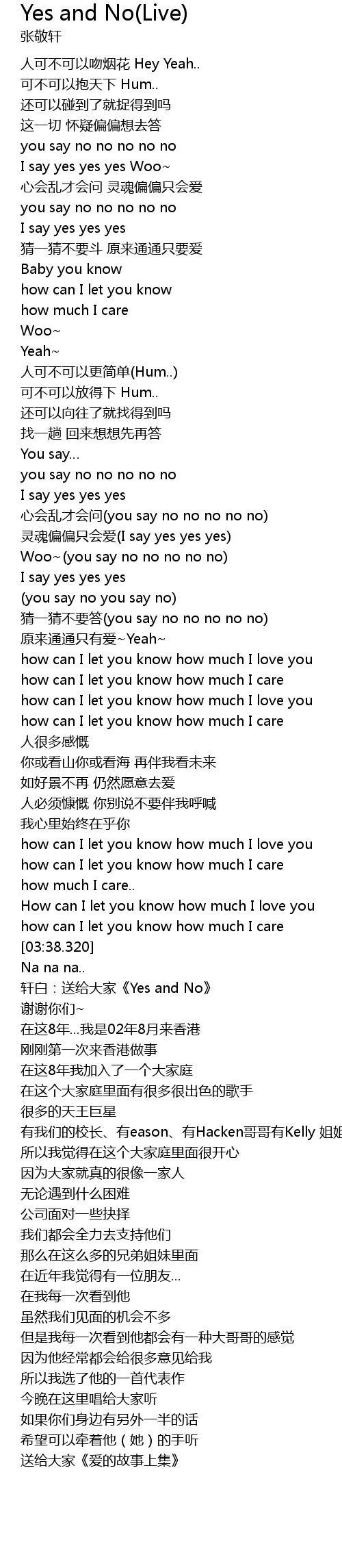 | [04:05.00] | xuān bái: sòng gěi dà jiā Yes and No |