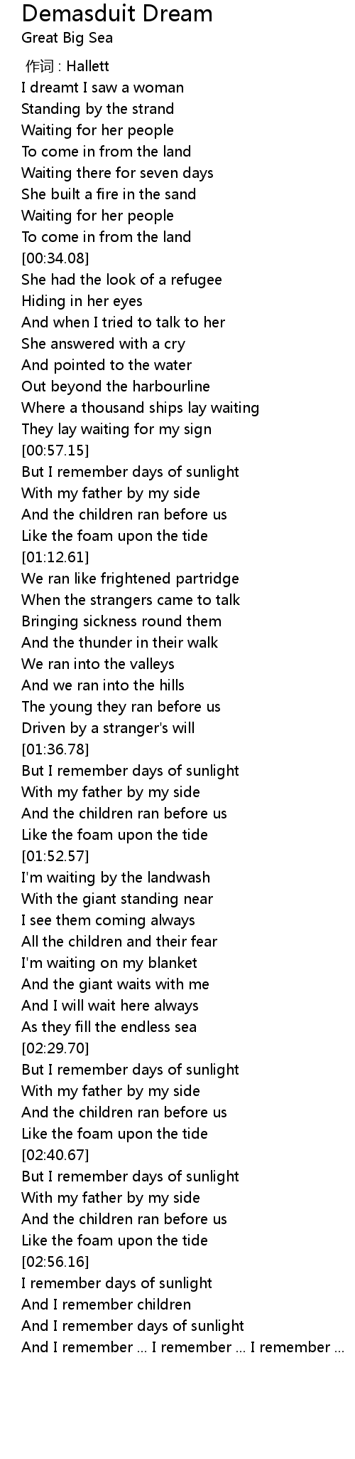 | [00:13.03] | Standing by the strand |