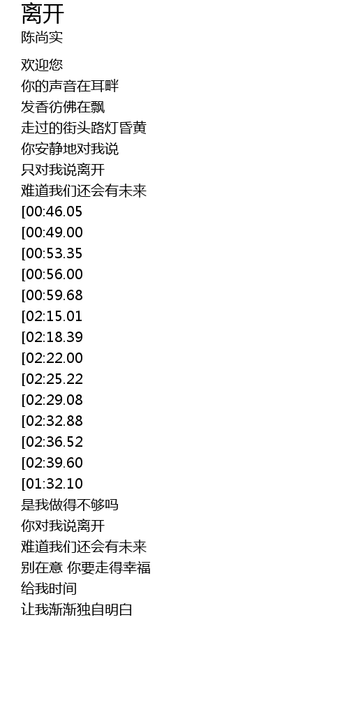 | [00:36.13] | 只对我说离开 |