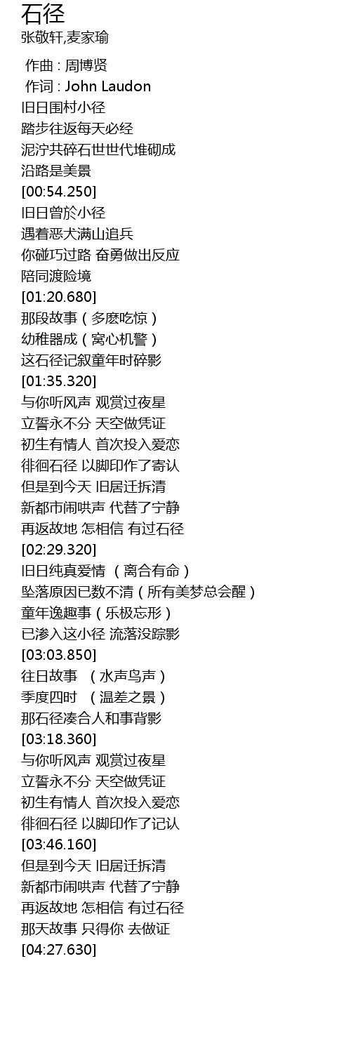 | [01:27.200] | 这石径记叙童年时碎影 |