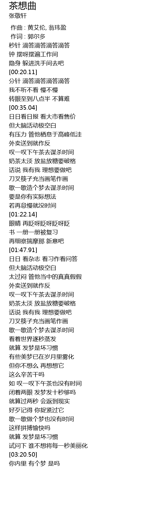 | [00:51.91] | 叹一叹下午茶去谋杀时间 |