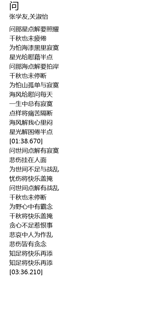 | [02:21.810] | wèn shì jiān diǎn jiě yǒu zhàn luàn |