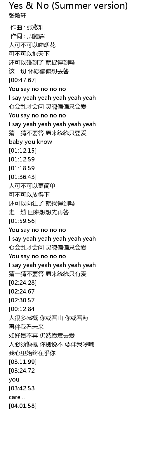 | [01:59.99] | You say no no no no |