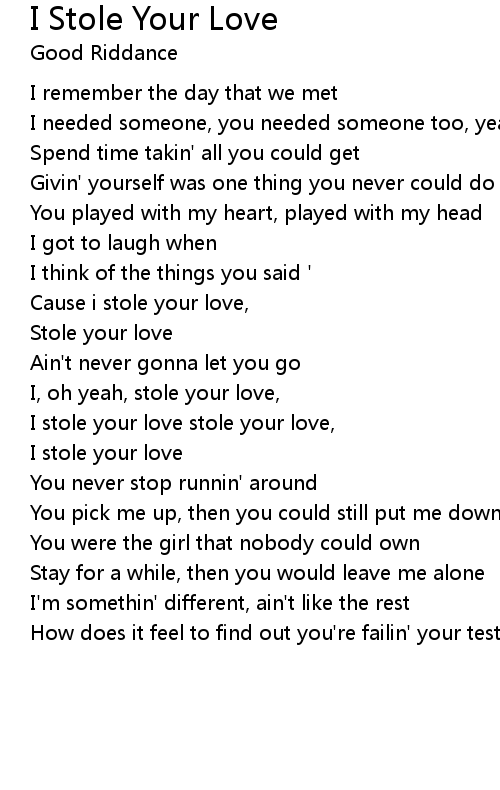 I, oh yeah, stole your love, |