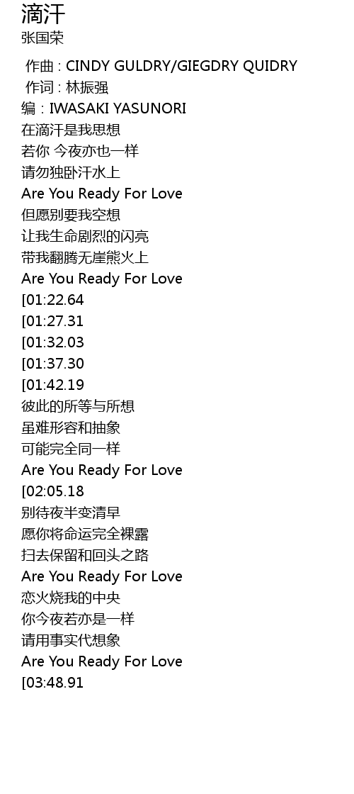 | [03:54.08][03:48.91] | Are You Ready For Love |