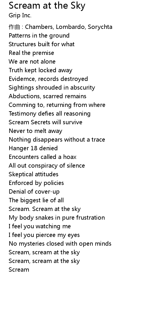 | Scream. Scream at the sky | |