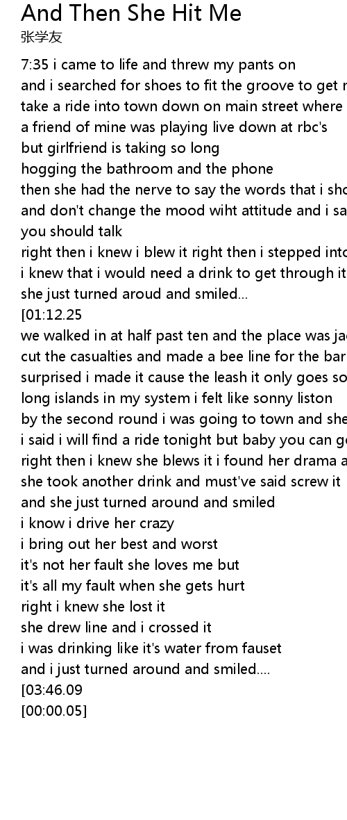 [02:25.55][01:12.25] and then she hit me and then she hit me