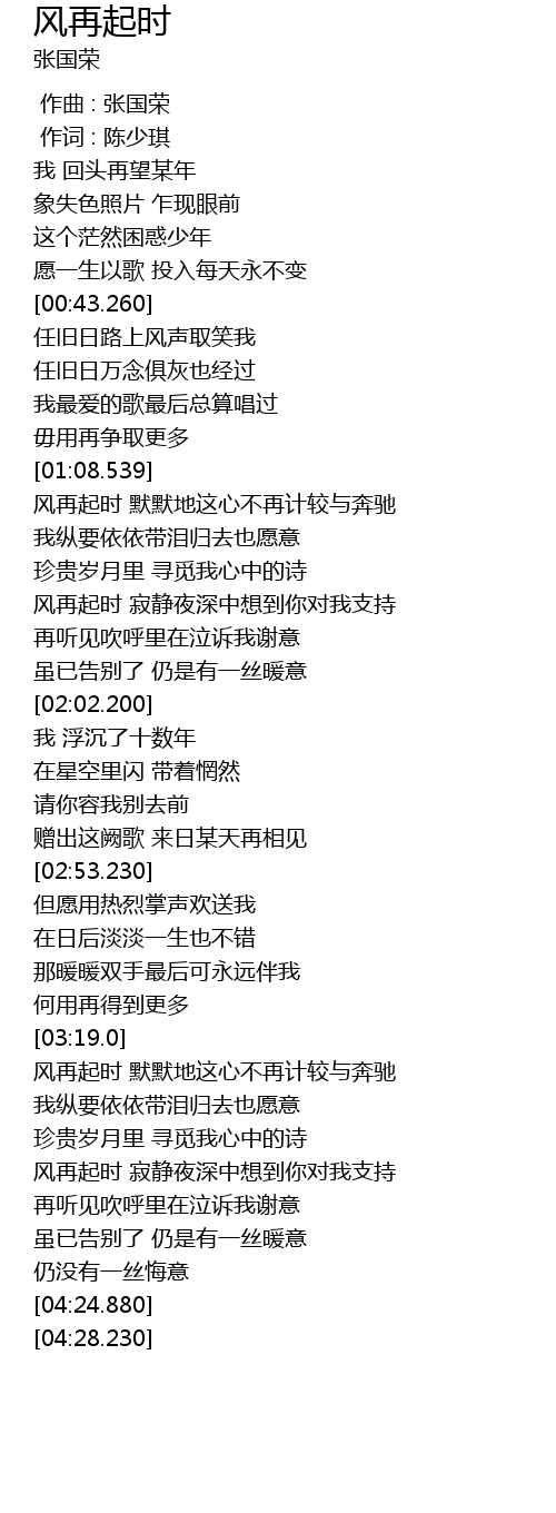 | [03:45.990] | 风再起时 寂静夜深中想到你对我支持 |