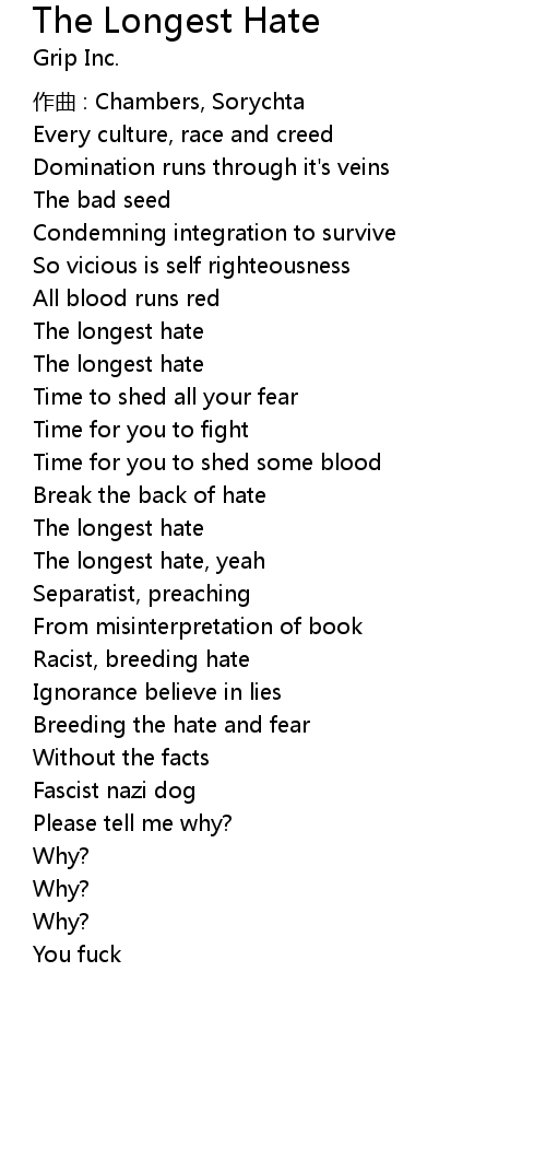 | The longest hate, yeah | |