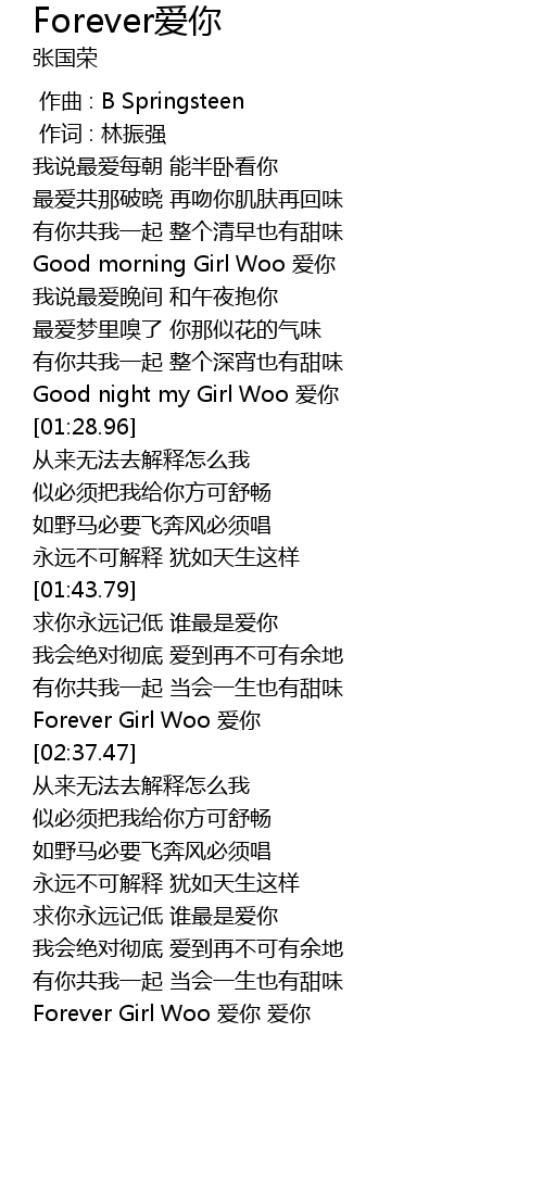 | [03:46.52] | Forever Girl Woo 爱你 爱你 |