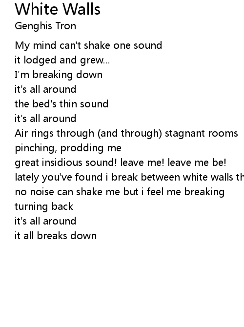 | lately you've found i break between white walls that burn the nerves | |