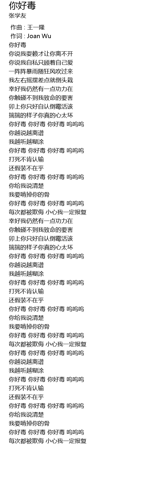 | [03:19.90] | 你好毒 你好毒 你好毒 呜呜呜 |