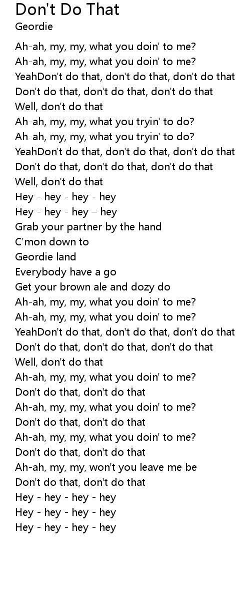 | YeahDon' t do that, don' t do that, don' t do that | |