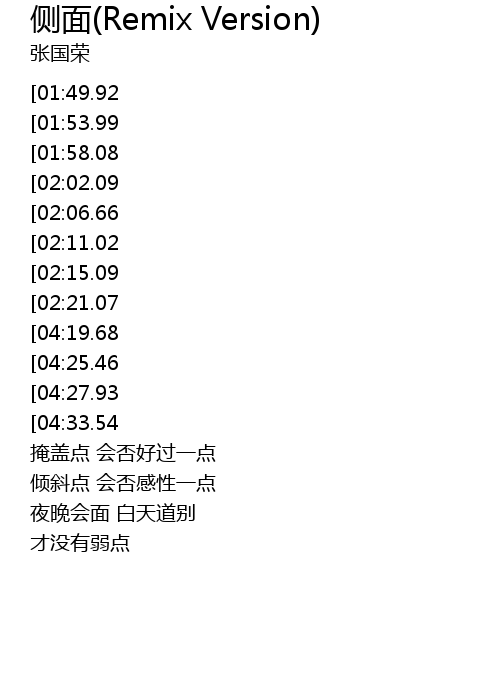 | [03:49.85][01:53.99] | 你眼光只接触我侧面 |