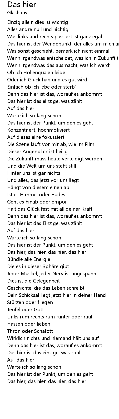 | Das hier ist das einzige, was zählt | |