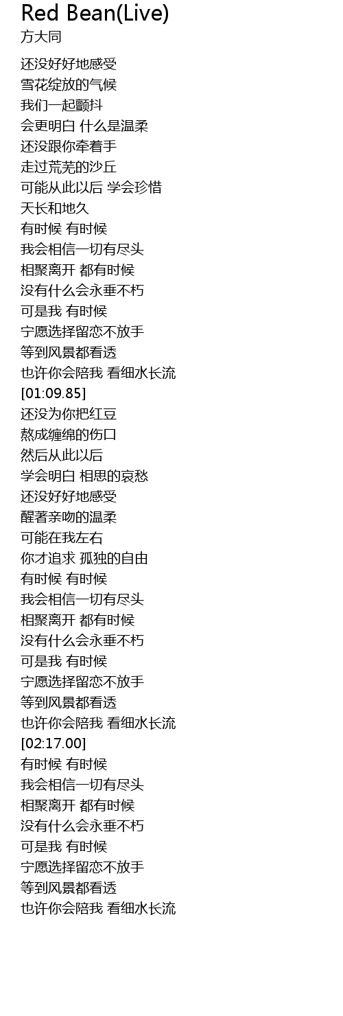 | [01:10.96] | hái méi wèi nǐ bǎ hóng dòu |