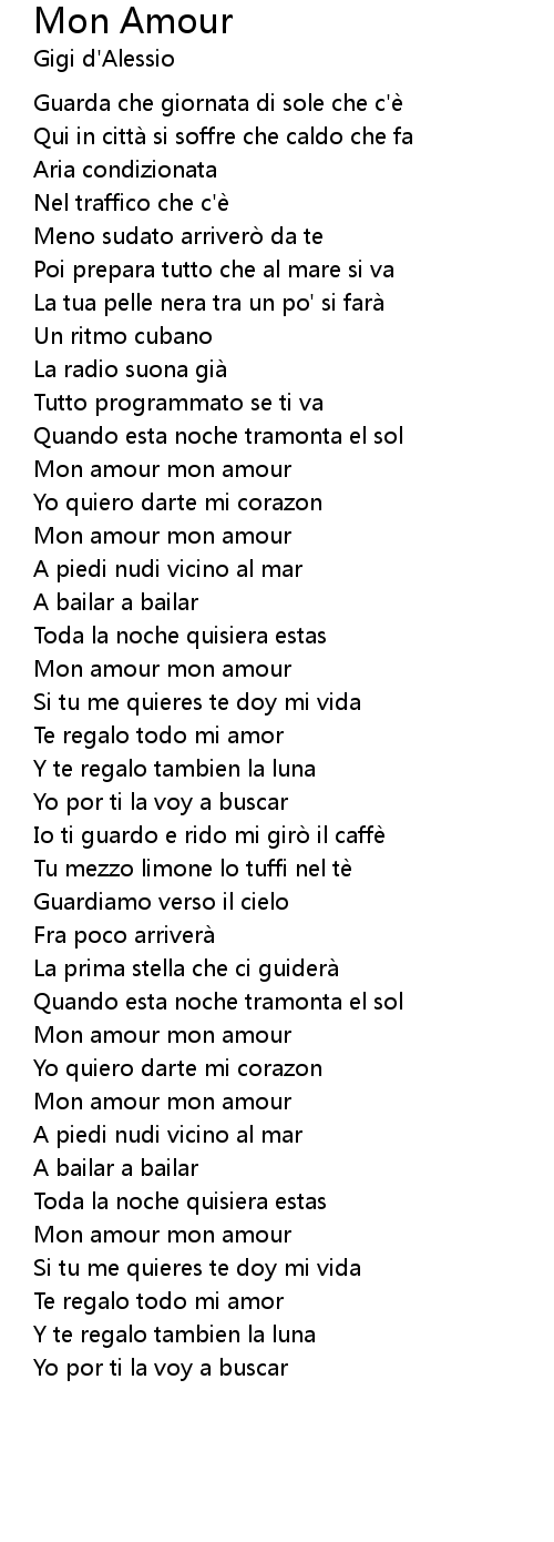 | Song | Mon Amour |