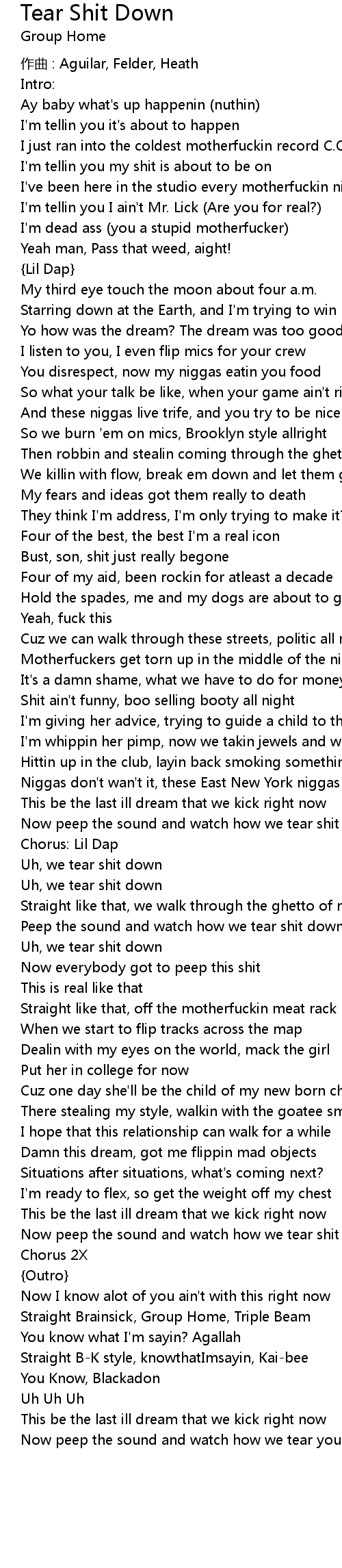 | Song | Tear Shit Down |