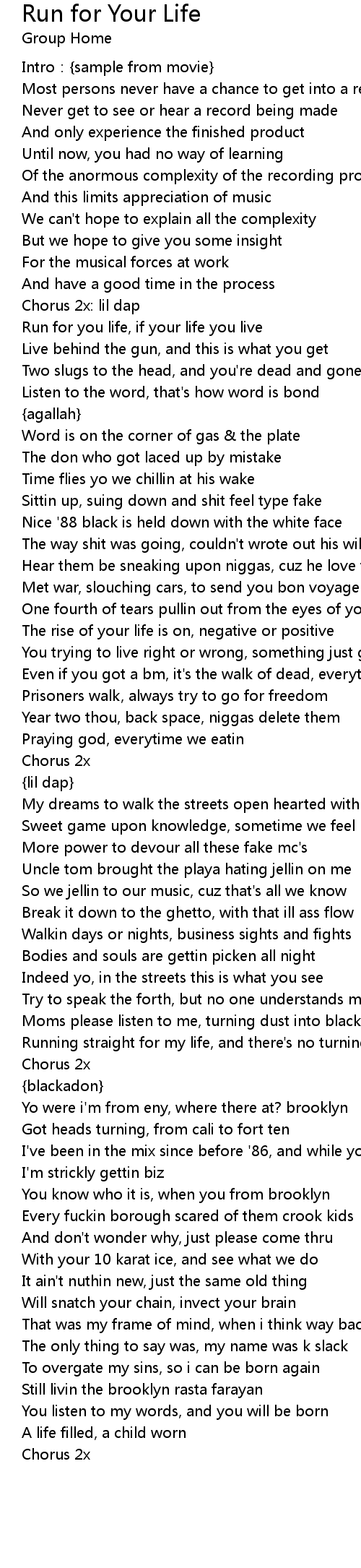 | Run for you life, if your life you live | |