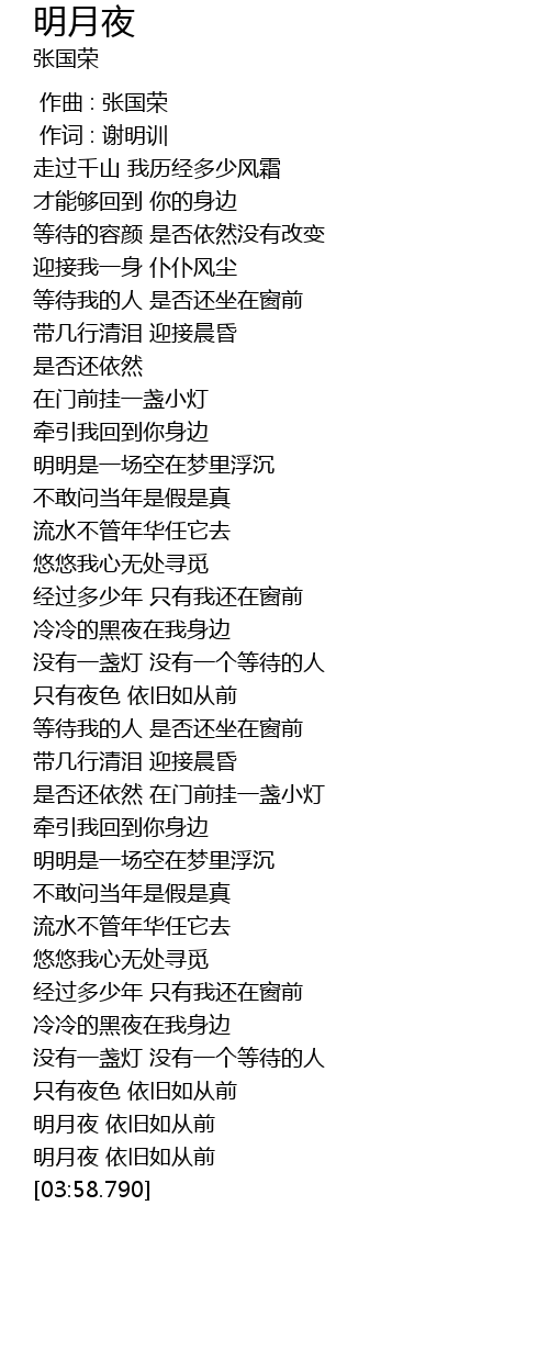 | [03:48.990] | ming yue ye yi jiu ru cong qian |