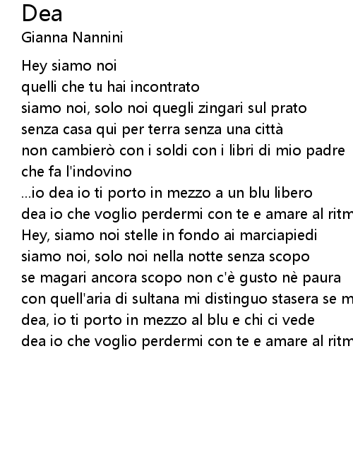 | dea io che voglio perdermi con te e amare al ritmo delle strade | |