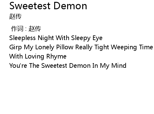 | [00:18.90] | You' re The Sweetest Demon In My Mind |