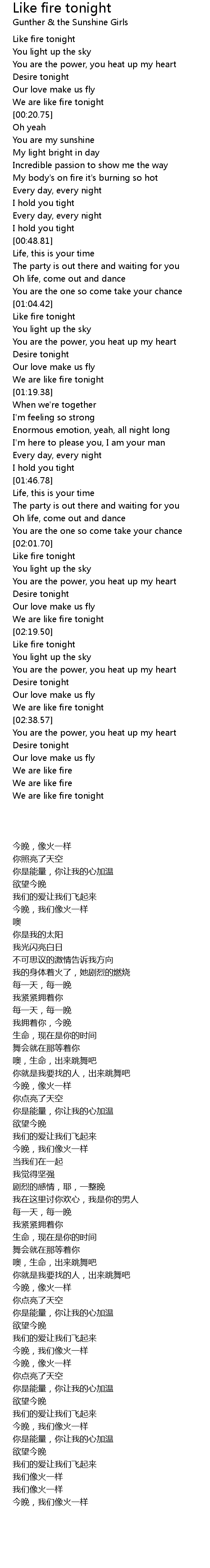 Like fire tonight |